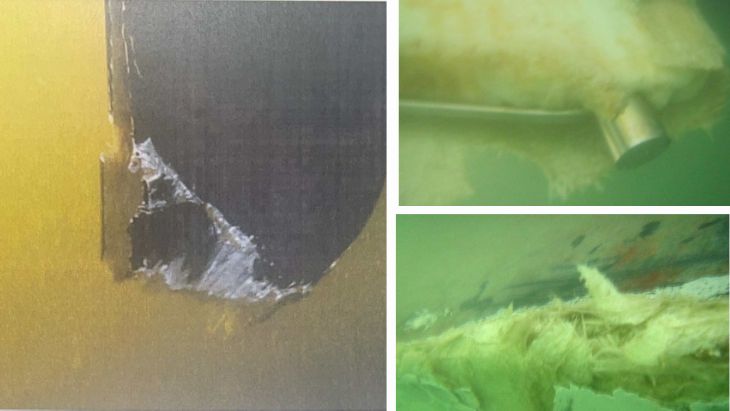 Zaznamenali jsme i několik poškození kormidelního listu v důsledku namotání lana.